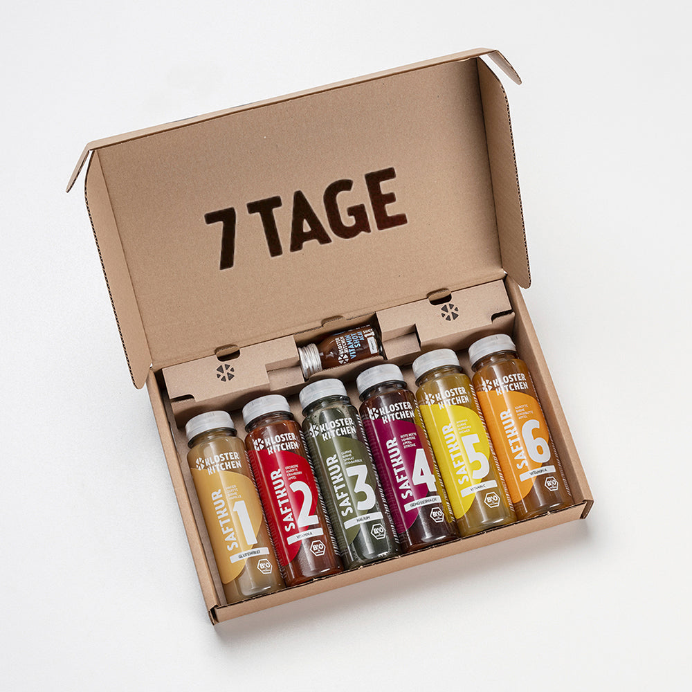 Our organic juices are produced in Germany. They are gently heated and can therefore be kept for 1 year after bottling, even unrefrigerated. This gives you the option of buying the cure and then starting it at your convenience. There is no ticking clock, so plan your personal time-out as it suits you best!