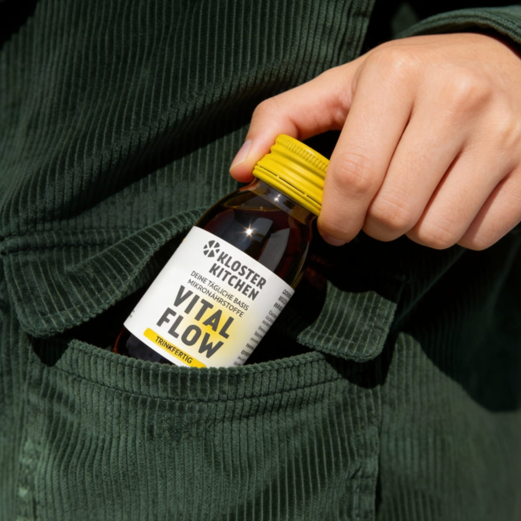 Micronutrients - i.e. essential vitamins, minerals and trace elements - support important bodily functions such as the immune system1, mental performance3 and energy metabolism2. Stress, an active lifestyle or certain eating habits - e.g. vegan - can change your micronutrient requirements. It is a challenge to get all the nutrients you need from food. A balanced, healthy diet is the most important basis. With VITAL FLOW, you give your body the extra micronutrients it needs to provide holistic support - consciously, simply and effectively.